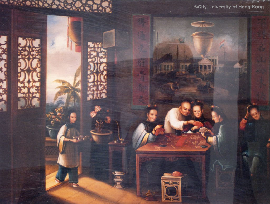 清朝耍樂 - 複製畫 作者未詳 Playing Card Games, Qing Dynasty (Reproduction) Artist Unknown 78.5 x 59 cm 97 x 78 cm (with frame)