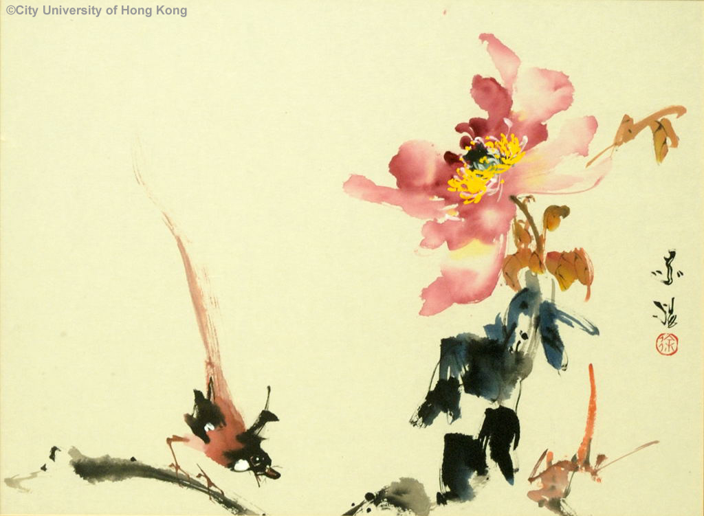 牡丹及鳥 徐嘉煬 Flower and Bird Kar-Yeung 1993 57 x 41 cm 83 x 62.5 cm (with frame)