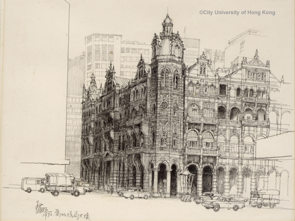 舊郵政總局大樓 江啟明 The Old General Post Office Kong Kai Ming 1970 45 x 36.5 cm 66 x 66 cm (with frame)