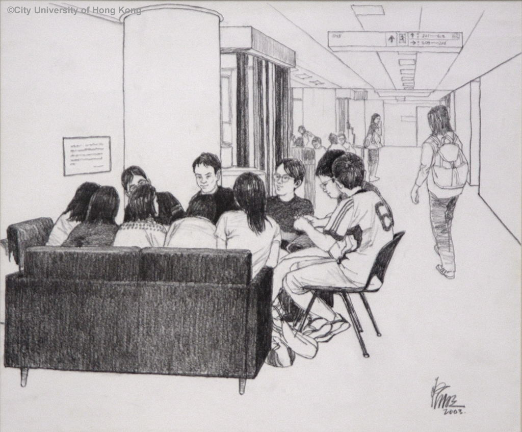 城大學生討論寫照 江啟明 Students in Discussion at CityU Campus Kong Kai Ming 2003 45 x 37 cm 66 x 53 cm (with frame)