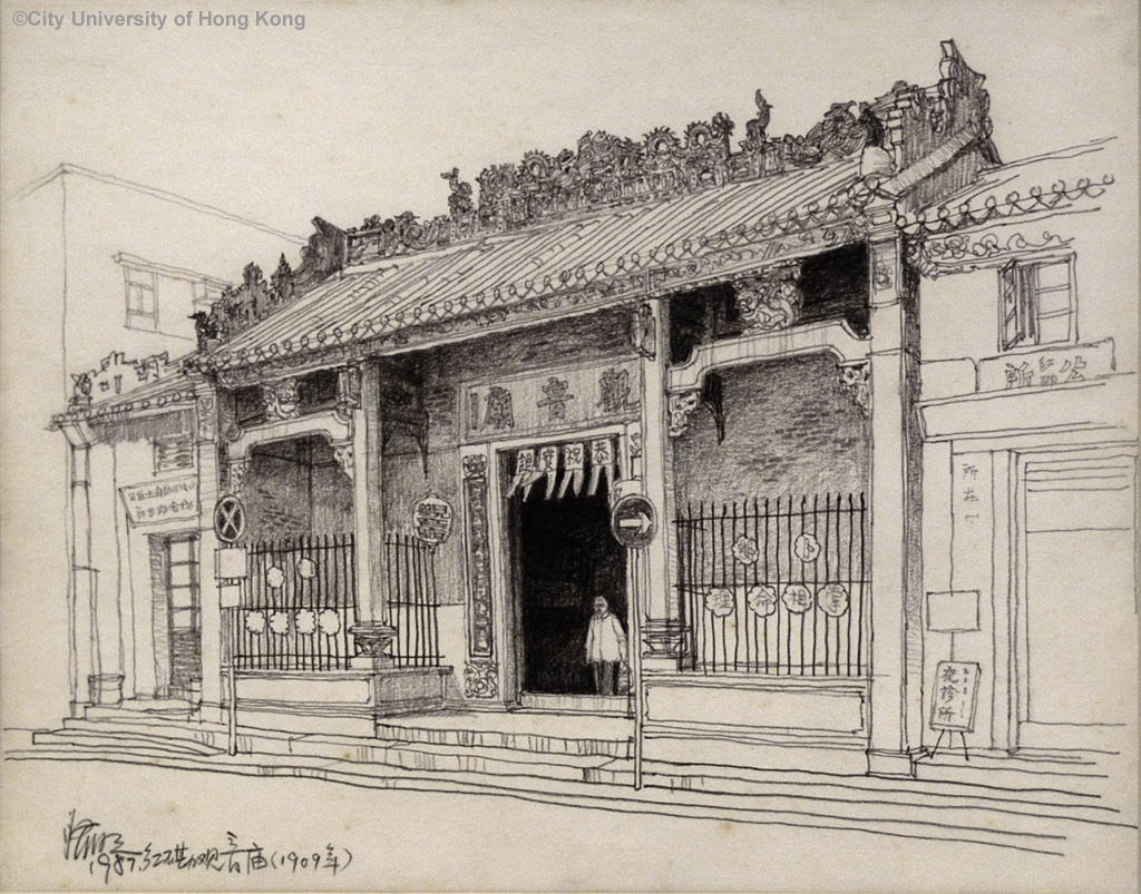 紅磡觀音廟 江啟明 Kwun Yum Temple Kong Kai Ming 1987 46 x 37 cm 64 x 64 cm (with frame)