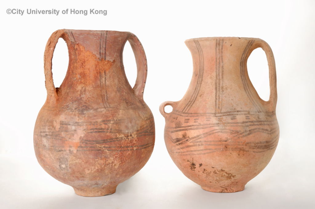 彩陶雙大耳罐 Two Painted Red Pottery Jars with Handles, Kar Ware (卡密) Neolithic Period (B.C. 8000-2100) 0 x 27 cm each