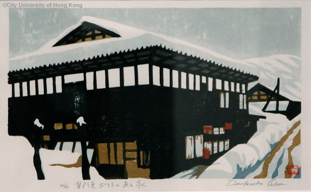 郵便ポストのある家 尾身伝吉 A House with a Mailbox Denkichi Omi 31 x 19 cm 44 x 36.5 cm (with frame)